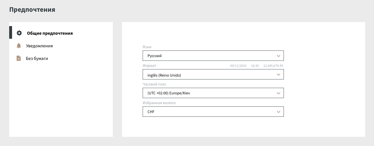 В этом разделе можно определить предпочтения и настроить интерфейс eBanking.